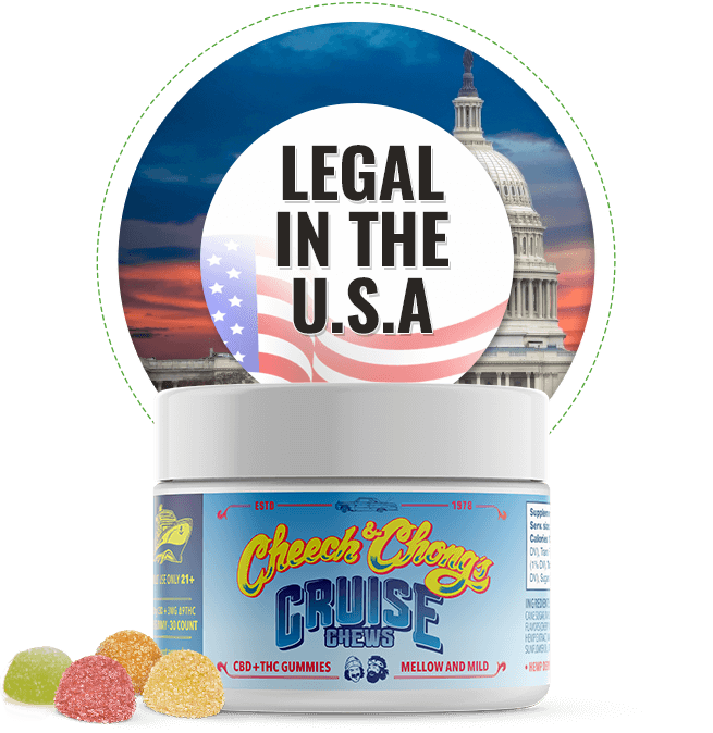 Obviously, Cheech & Chong take their THC seriously. So the Delta-9 THC in Cruise Chews is naturally occurring, and gently extracted from non-GMO, U.S. grown hemp plants. All of the hemp is tested at harvest to ensure the absence of pesticides, heavy metals & other toxins. Then it is filtered to extract the valuable terpenes & phytocannabinoids.